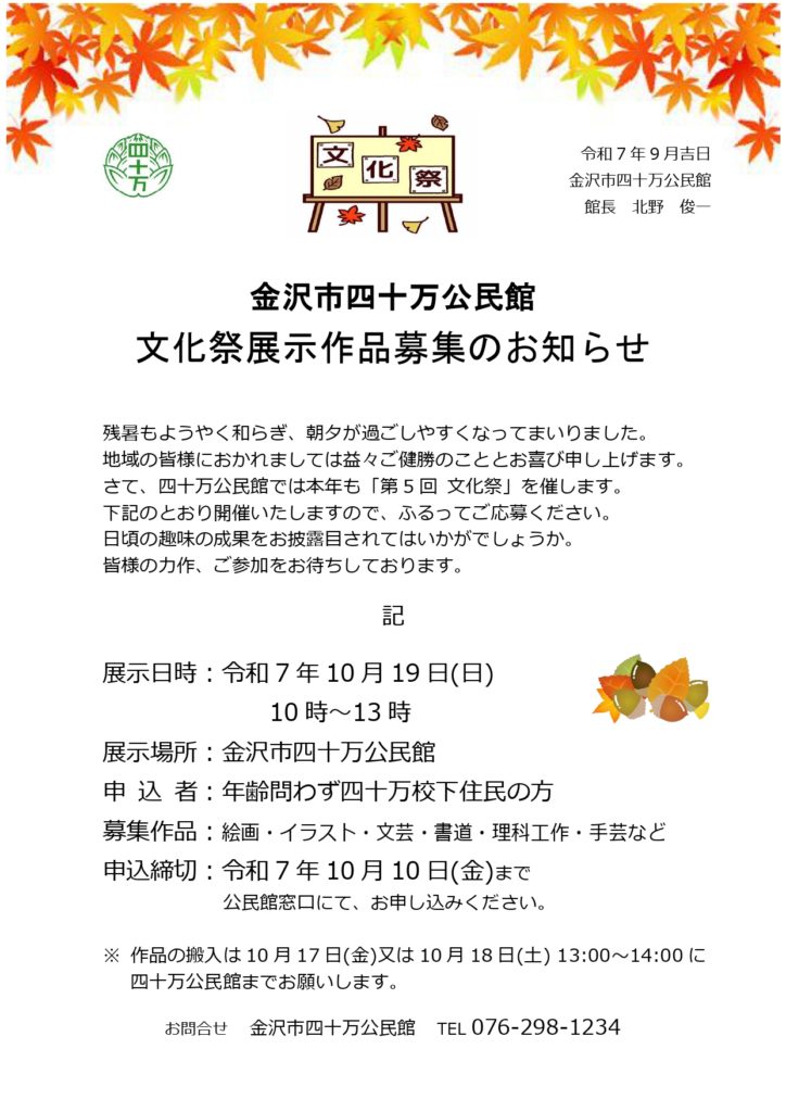 令和7年度 四十万公民館「文化祭」のご案内