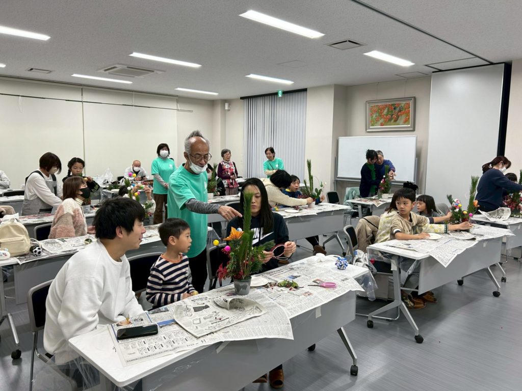 文化部長に作り方を説明していただき、皆さん素敵な作品が出来上がりました。一緒に作る姿は、ほほえましかったです。